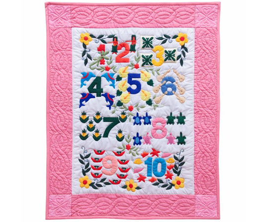 Counting Baby Quilt Green – 1 to 10 Hawaiian Design for Nursery
