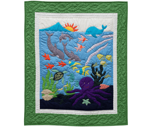 • Hand-appliquéd ocean life design – octopus, fish, turtles, and more