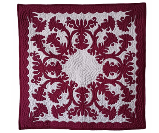 42″ Hawaiian Quilt Wall Hanging – Burgundy Crown Flower