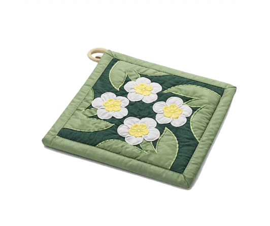 Bring home the warmth of aloha with this handcrafted Hawaiian quilt potholder – White Plumeria Design and make every meal feel a little more special.