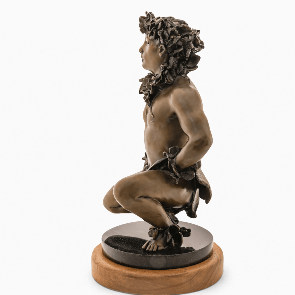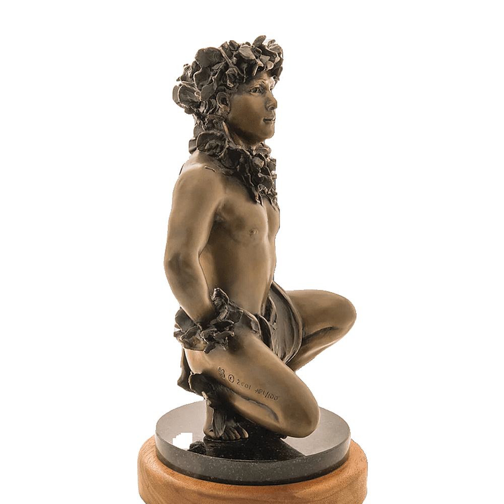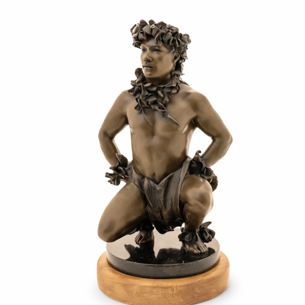 Hawaii’s foremost photographer of Hula Kahiko, Kim Taylor Reece, creates bronze sculptures of his renowned photographic images. The figurine, titled “Ku’ulei”, is a beautiful representation of Hula Kahiko, capturing the intricacies and grace of the traditional Hawaiian dance. With realistic detailing and a remarkable level of craftsmanship, “Ku’ulei” is sure to be an exquisite addition to any home.